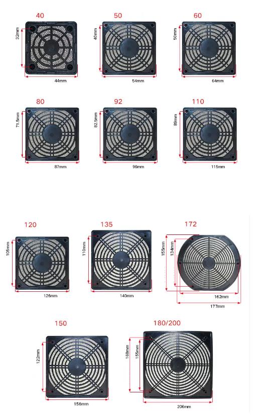Available size from 40mm to 200mm plastic fan guard, contact us for samples